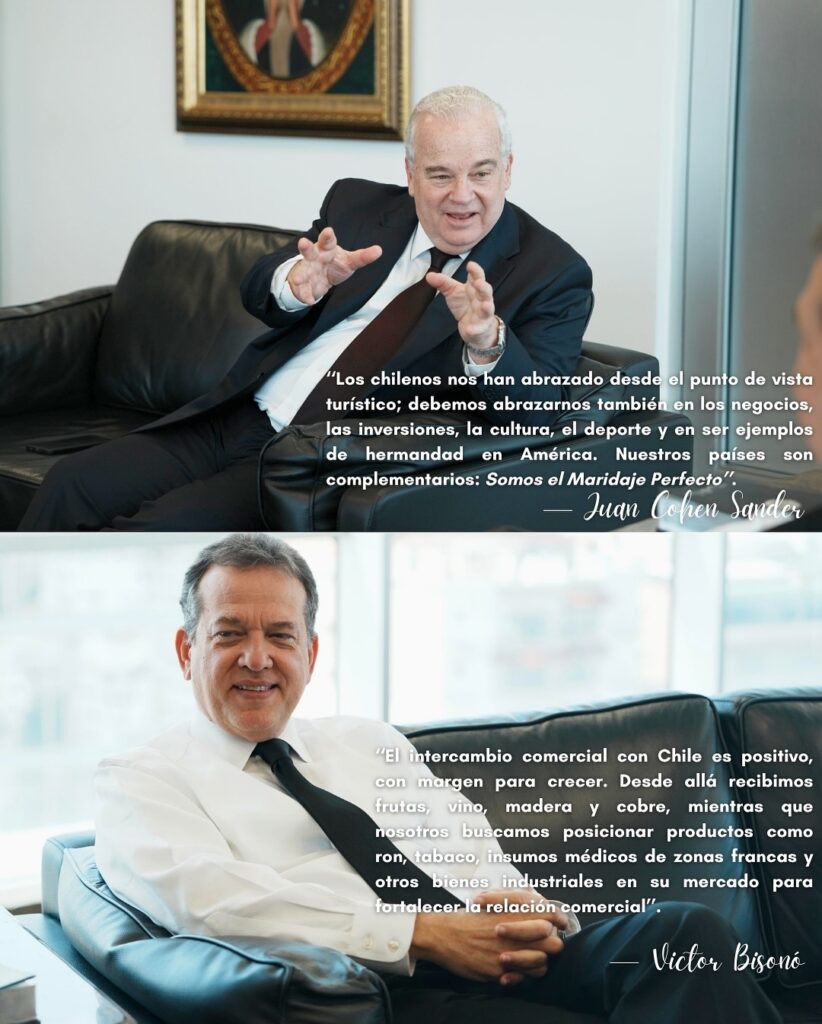 El Ministro Bisonó @itobisono destacó que la reunión fue muy fructífera y subrayó que, República Dominicana y Chile mantienen un intercambio comercial muy positivo, con margen para crecer. Recordó que desde Chile se reciben productos como frutas, vino, madera, cobre. Además, señaló que República Dominicana busca que productos como el ron, el tabaco, los productos médicos de zonas francas y otros bienes de sus industrias lleguen también a Chile para fortalecer el intercambio comercial.